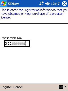 Should you have purchased a SiDiary USB stick, the transaction number can be found by starting SiDiary on the stick and then switching into the menu 'Help -> Register'..