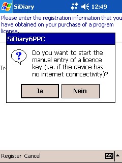 Then SiDiary will ask you if you want to enter the license key manually. Click on 'Yes':
